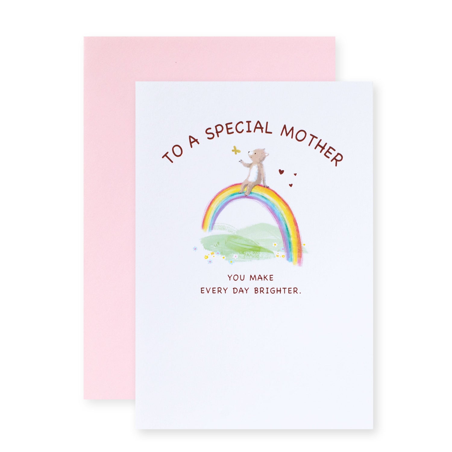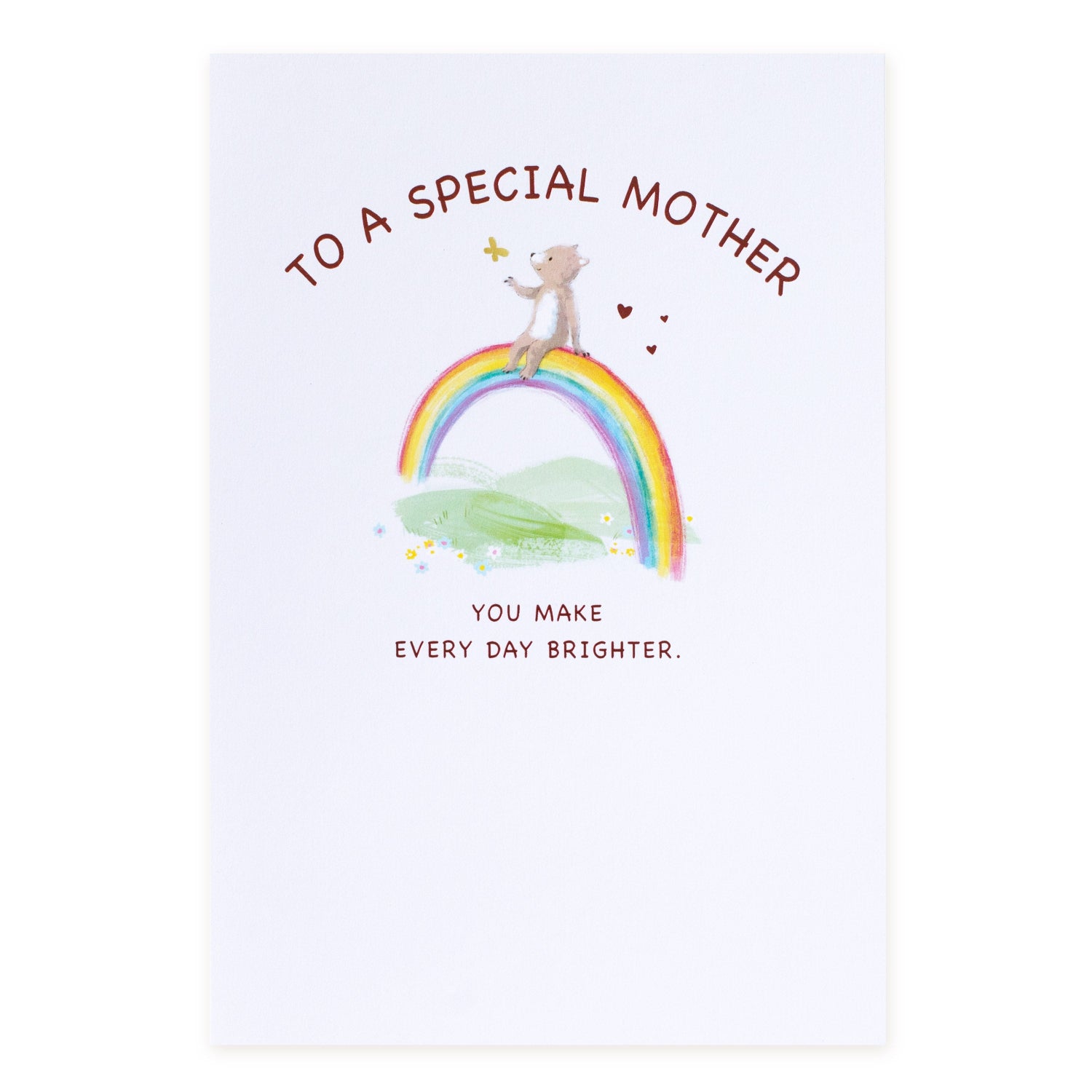 Front of card reads: To a special Mother. You make every day brighter. Inside message: Thanks for being so lovely. Happy Mother's Day. Made from materials sourced from well-managed, FSC®-certified forests and other controlled sources. 100% recyclable.