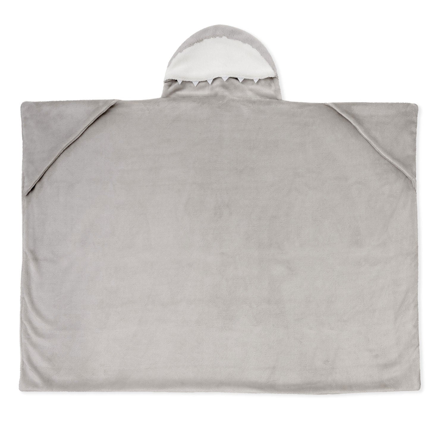 Perfect for playtime or snuggle time, this plush hooded shark blanket in grey and white features a shark head design on the hood (complete with tiny pointed teeth), corner pockets on the underside for little hands to grab and snuggle, and a fun dorsal fin on back. Crafted from the same super-soft fabric as our coordinating shark plush (sold separately), this hooded shark blanket for kids encourages imaginative play, while also providing a cosy wrap for a little one who's constantly in motion.