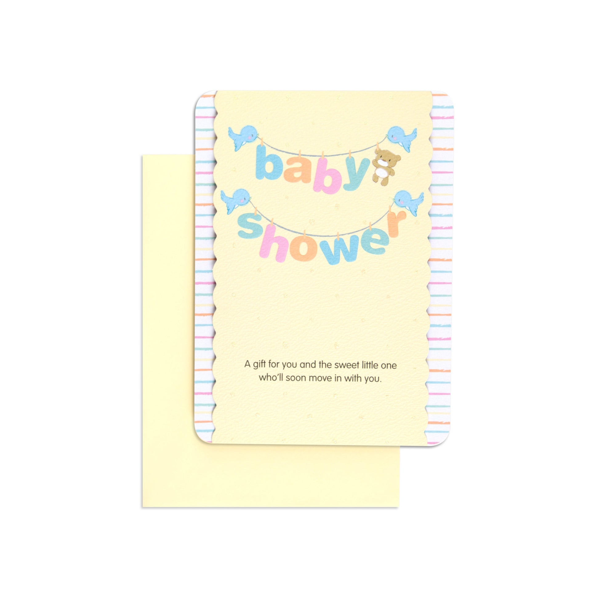Includes one baby shower card and one light yellow Hallmark branded envelope