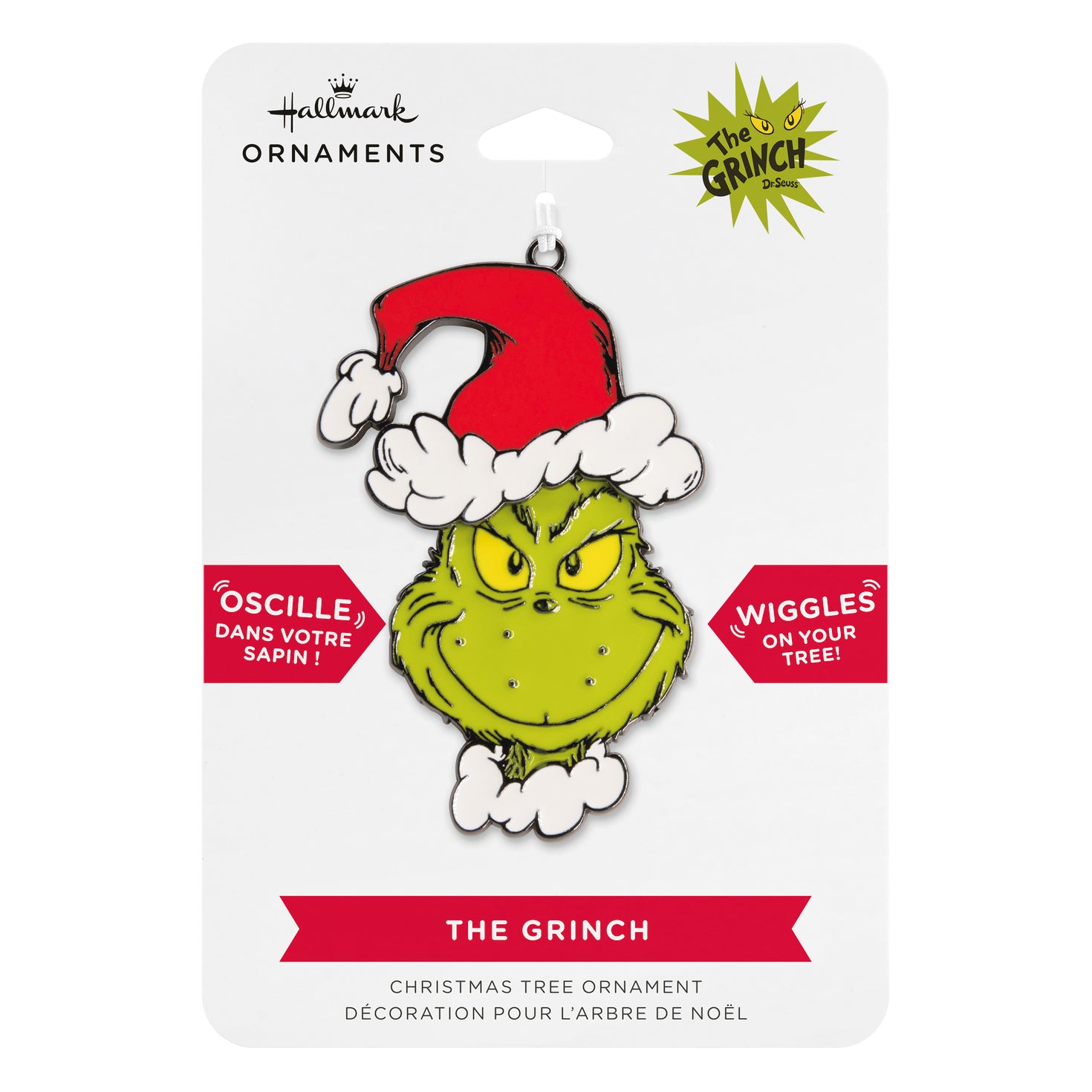 Celebrate the family tradition of the Dr. Seuss classic “How the Grinch Stole Christmas!” with this fun Christmas tree ornament. Watch the Grinch's head playfully wiggle beneath his homemade Santa hat when you hang the two-piece, colorful metal decoration on your tree. It's sure to delight all the Whos in your home, the tall and the small. Hallmark Ornaments are a great way to commemorate hobbies, life events and individual interests in entertainment, sports and more. Each festive and collectible ornament is perfect for sharing with family and friends.