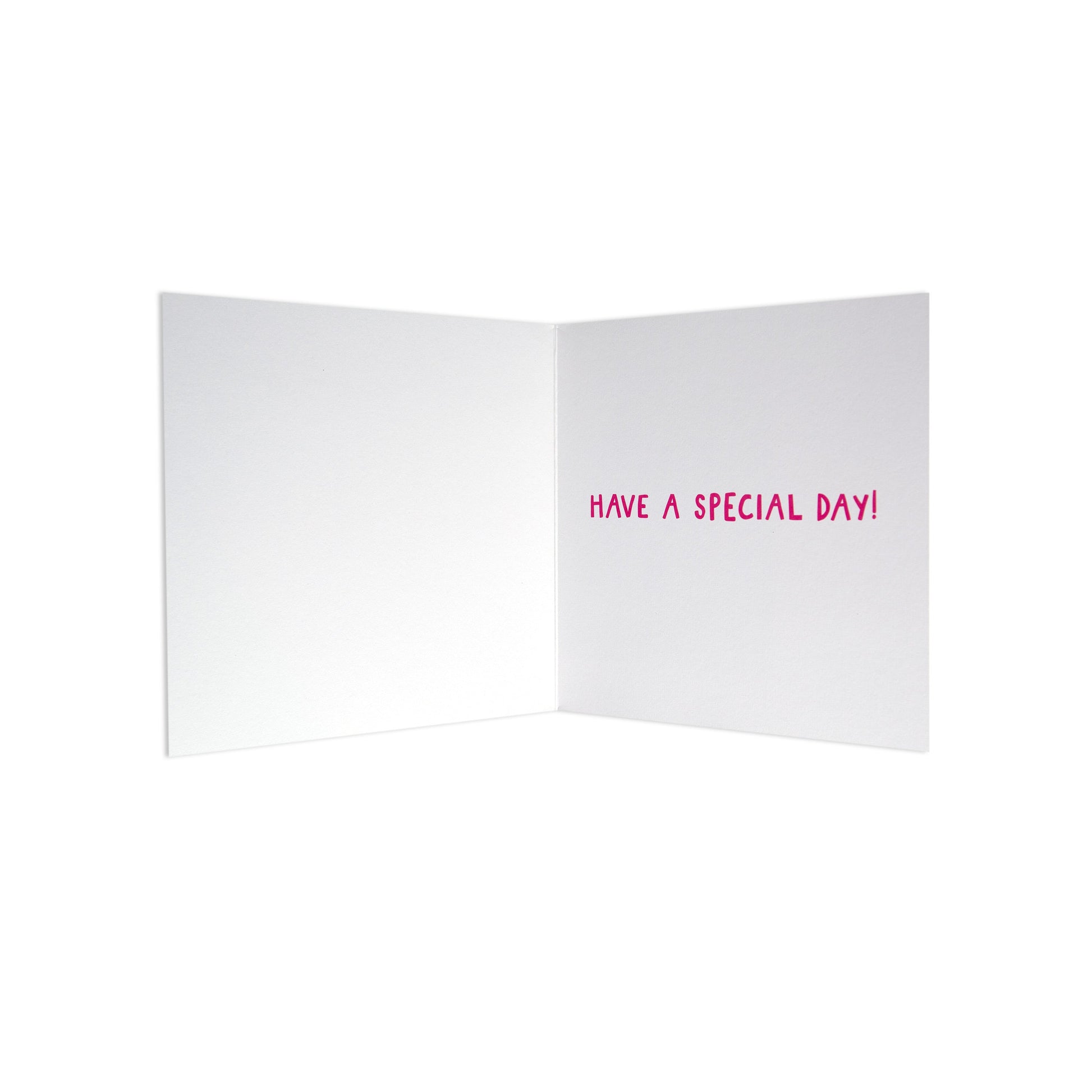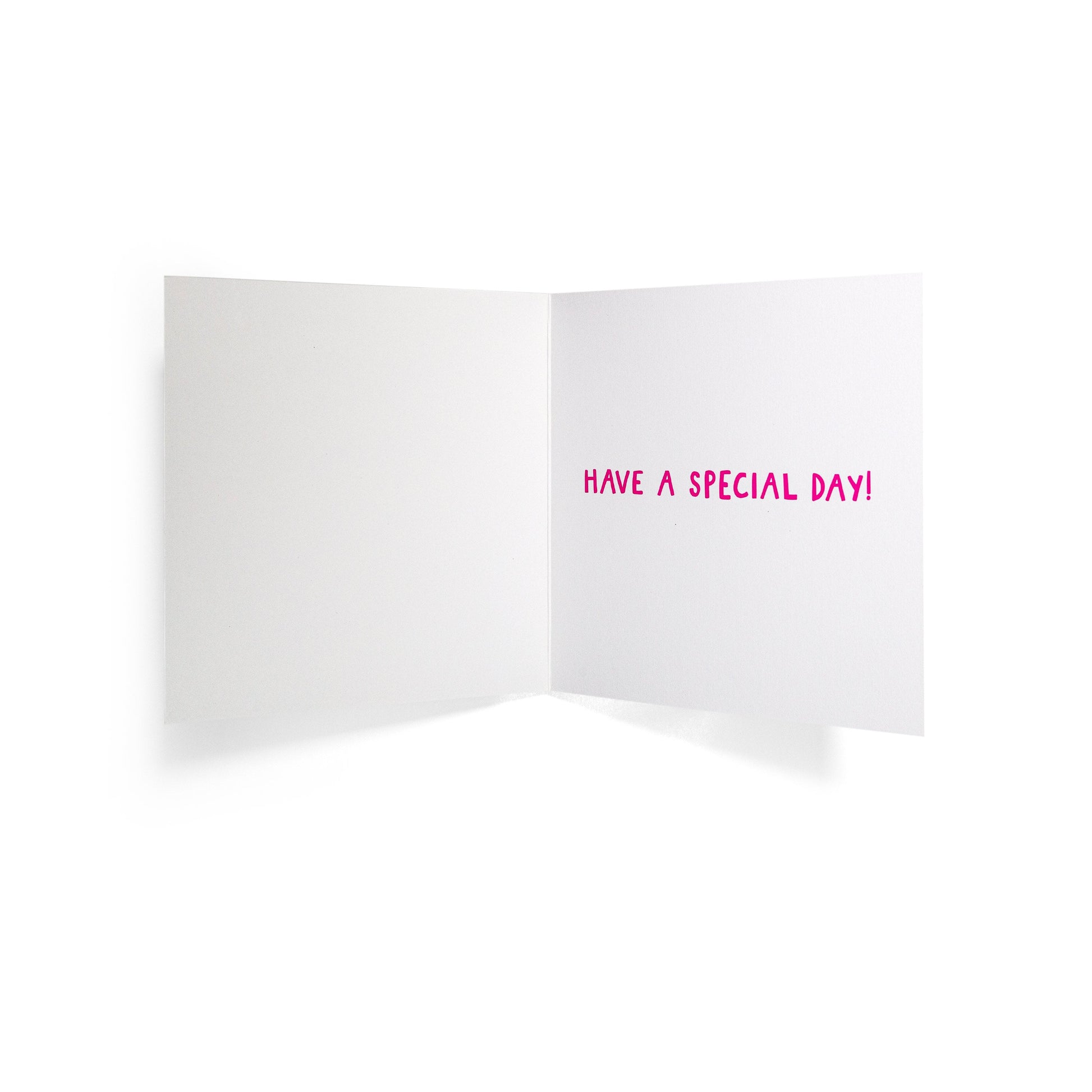 - The inside of the birthday card is white and features the hot pink the message: “HAVE A SPECIAL DAY!”