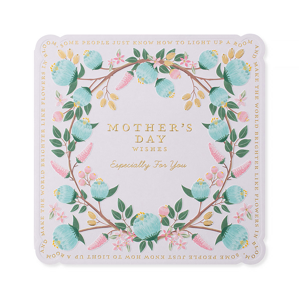 Front of card reads: Mother's Day Wishes Especially for You. Inside message: With lots of love… Have the perfect day. Made from materials sourced from well-managed, FSC®-certified forests and other controlled sources. 100% recyclable.