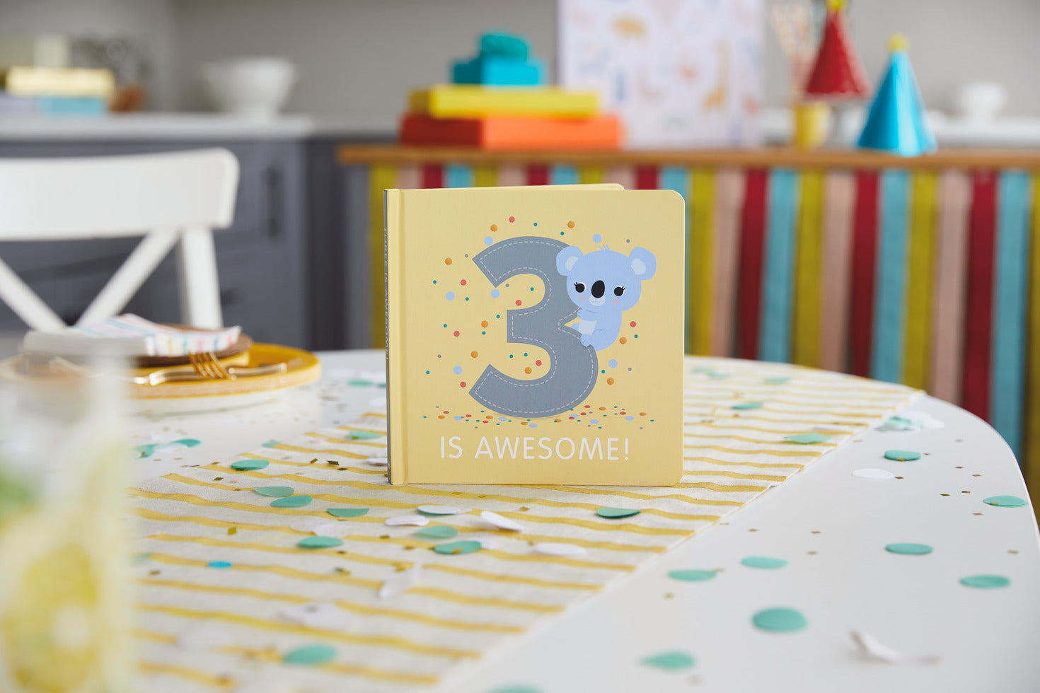 Mark a toddler's milestone birthday with this book's rhyming celebration of a 3-year-old. It's message looks back through the best moments of the first three years of life and looks forward to the joys, changes and sentimental journey of the days ahead. 'Three Is Awesome!' makes a sweet gift idea from a grandma, godmother or family member who's far away.