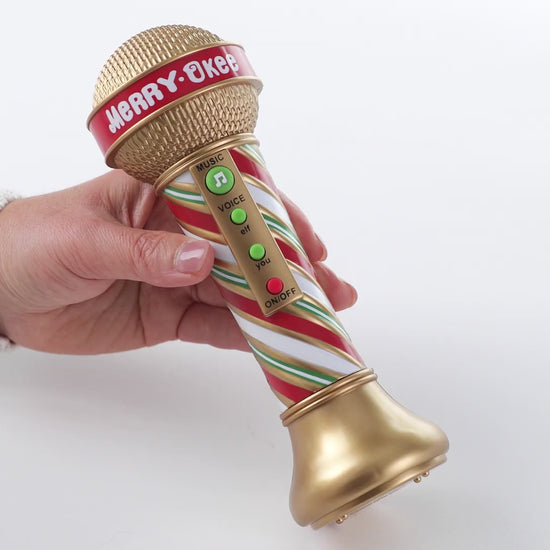 - Merry-Okee microphone toy lets you sing with included holiday songs or your own music.