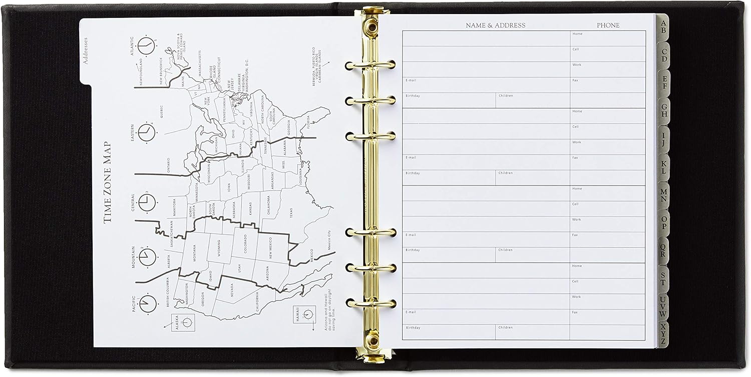 Binder style address book features a padded Charcoal cover with stamped gold foil "address book" Lettering.