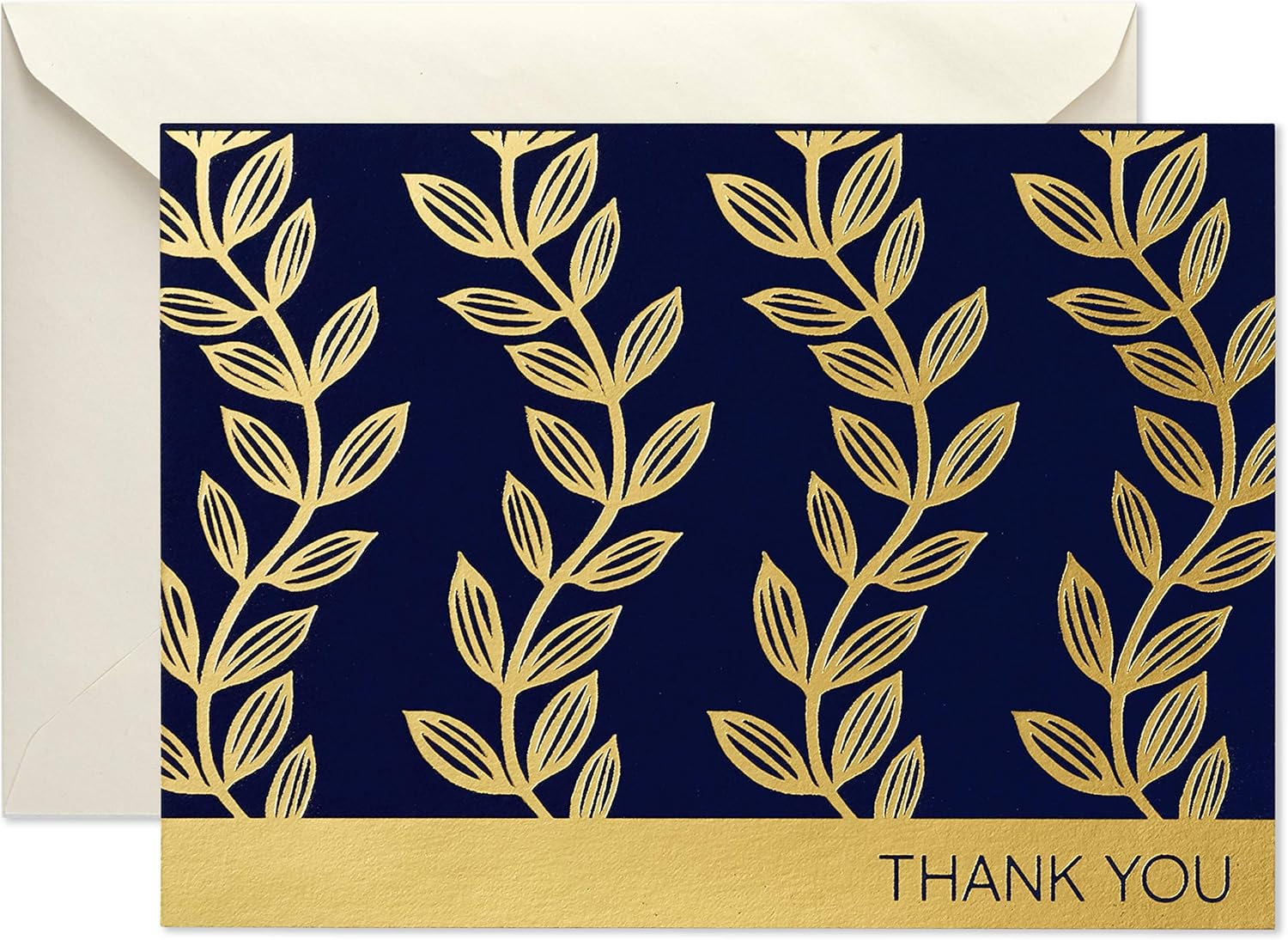 Elegant assortment includes 50 gold and navy thank you cards (25 of each design) with envelopes. Cards are blank inside, leaving plenty of room for a handwritten, personalized note.
