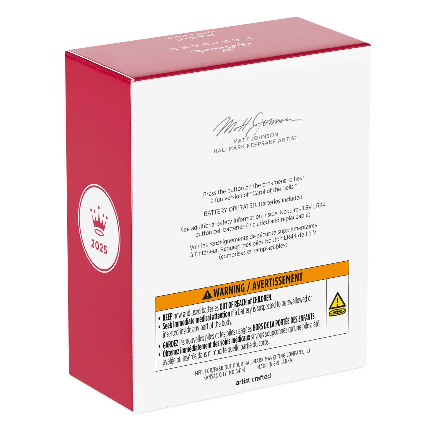 - Sound: Ornament plays a fun version of "Carol of the Bells."