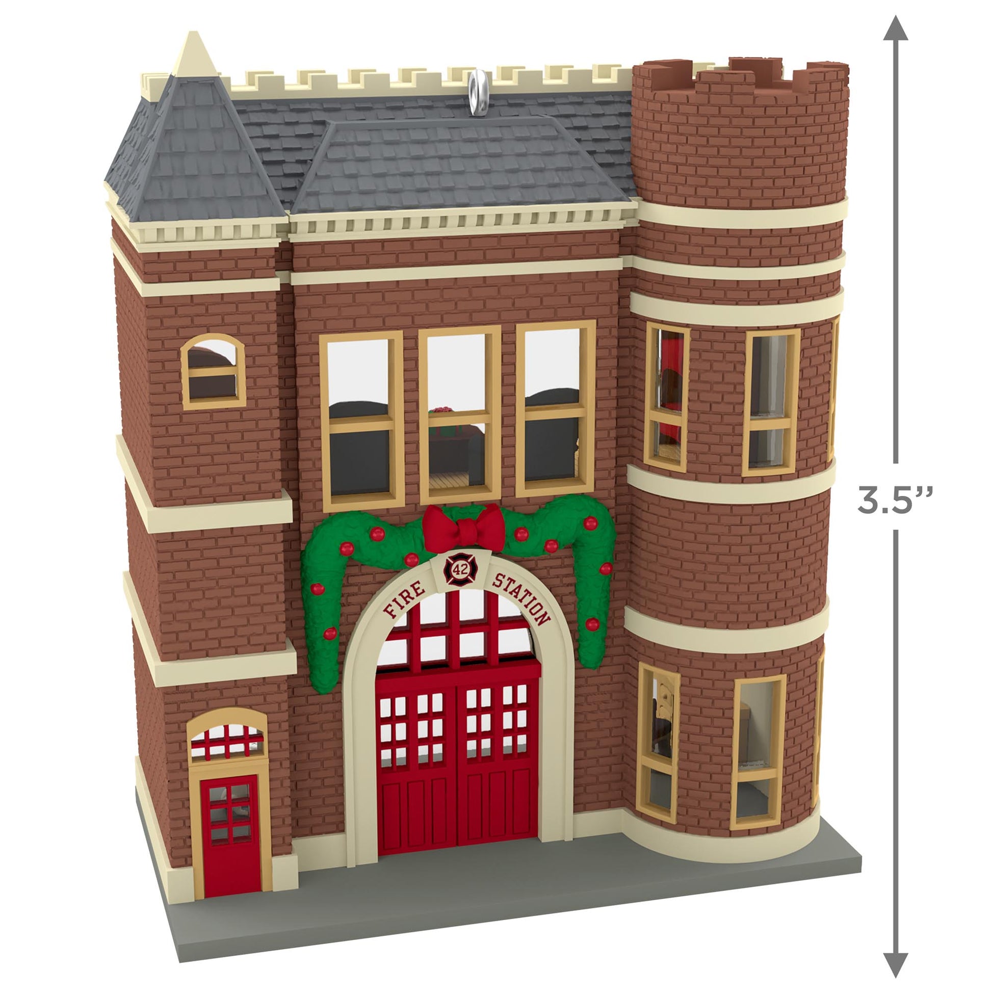 - Make the neighbourhood safe with this classic fire station. Keepsake Korners Firehouse Keepsake Christmas ornament features a red brick exterior decorated for the holidays with garland.