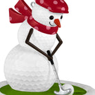 - Putting a snowman made out of golf balls wears a festive hat and scarf.