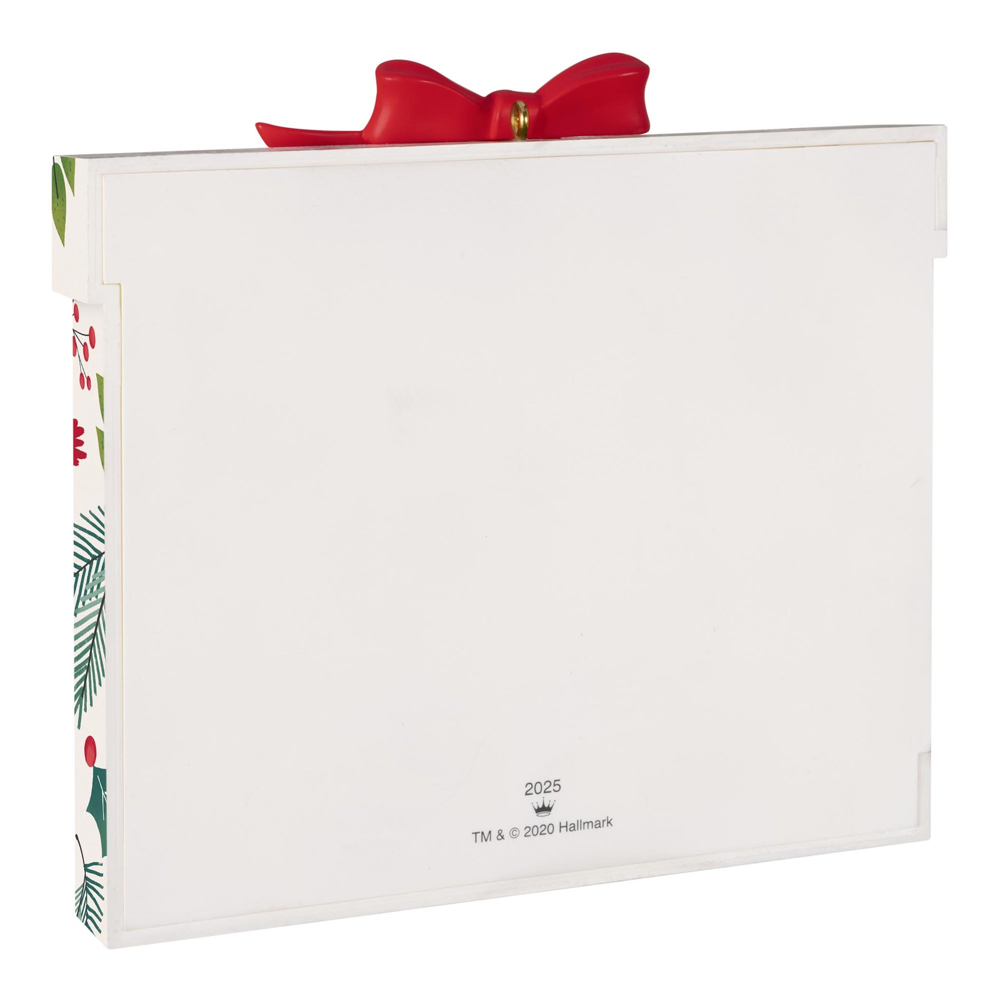 Show off your favourite family snapshot with this photo holder Christmas tree ornament. Decorated like a festively wrapped gift box tagged with a sweet message, this year-dated ornament features a rectangular picture frame for a small horizontal photo. Perfect for remembering a favourite holiday moment for many years to come. With unparalleled artistry and exceptional detail, Hallmark Keepsake Christmas ornaments are perfect for preserving precious memories, commemorating special milestones and celebrating individual hobbies and interests.