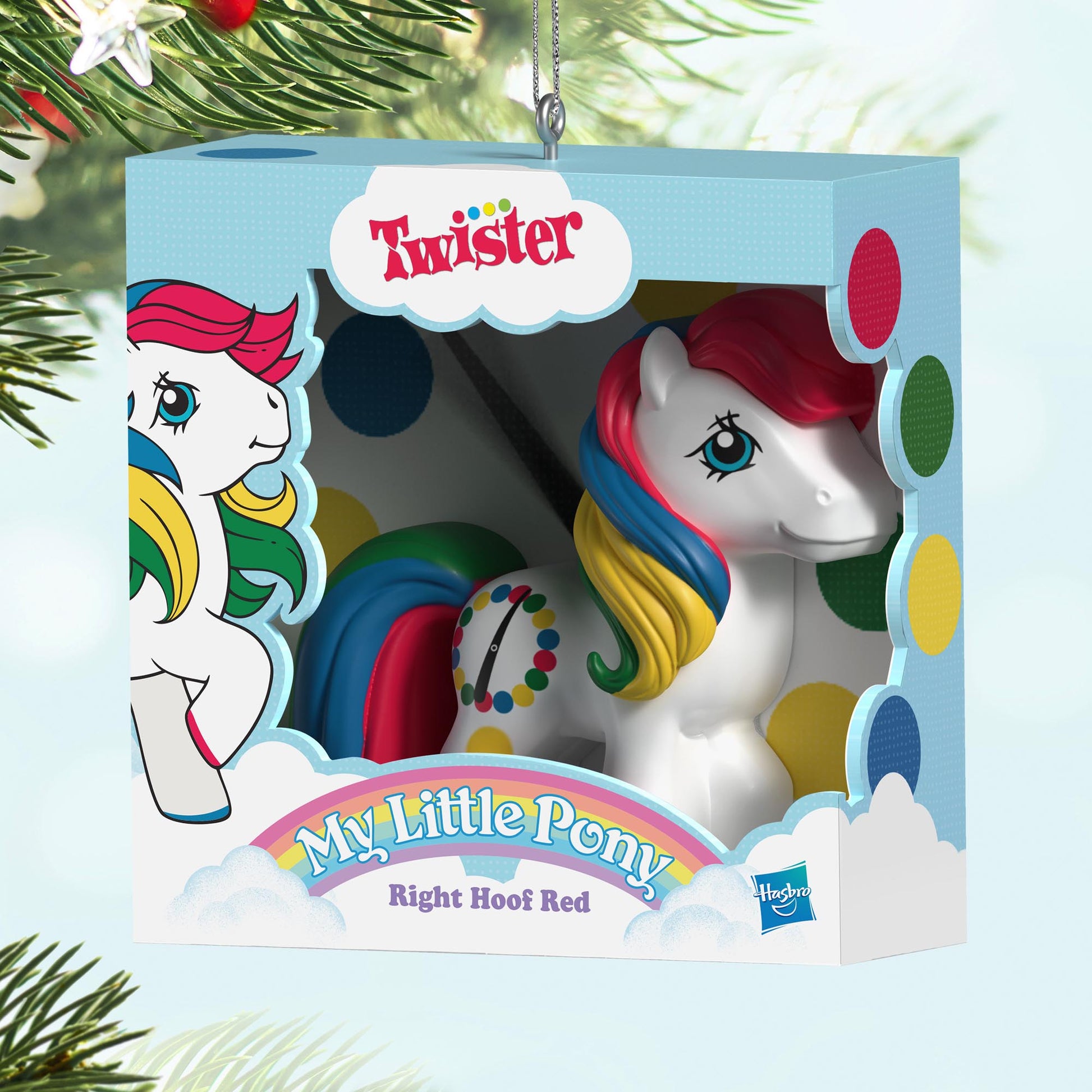 - Delight toy lovers of all ages with this cute My Little Pony Retro Twister Right Hoof Red Hallmark Keepsake Christmas ornament.