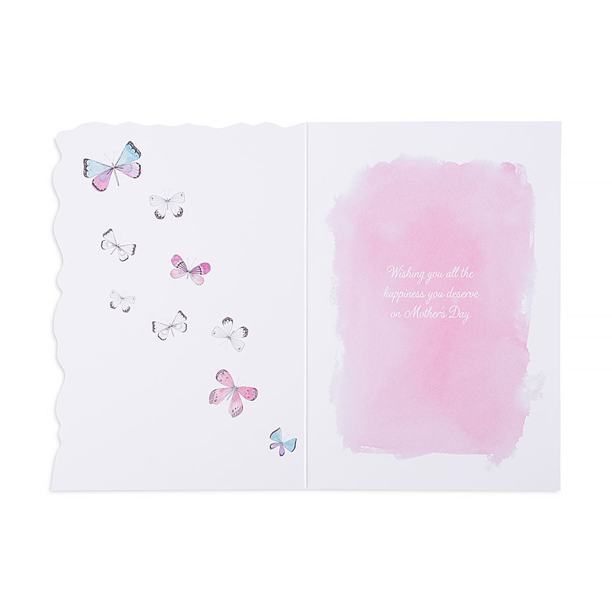 Front of card reads: Just for you Mother. Inside reads: Wishing you all the happiness you deserve on Mother's Day. Made from materials sourced from well-managed, FSC-certified forests and other controlled sources. 100% recyclable.