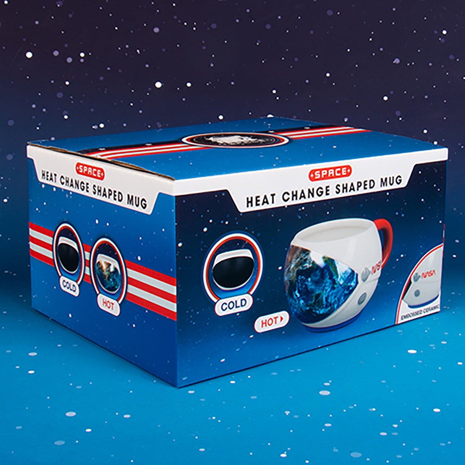 Bring comfort to your day as you enjoy your favourite hot drink! With opposing NASA artwork on each side, this mug is designed to resemble a classic astronaut’s helmet, using embossed ceramic to add a 3D feature. Sit back and relax as this mug reveals a fascinating image when hot liquid is added.