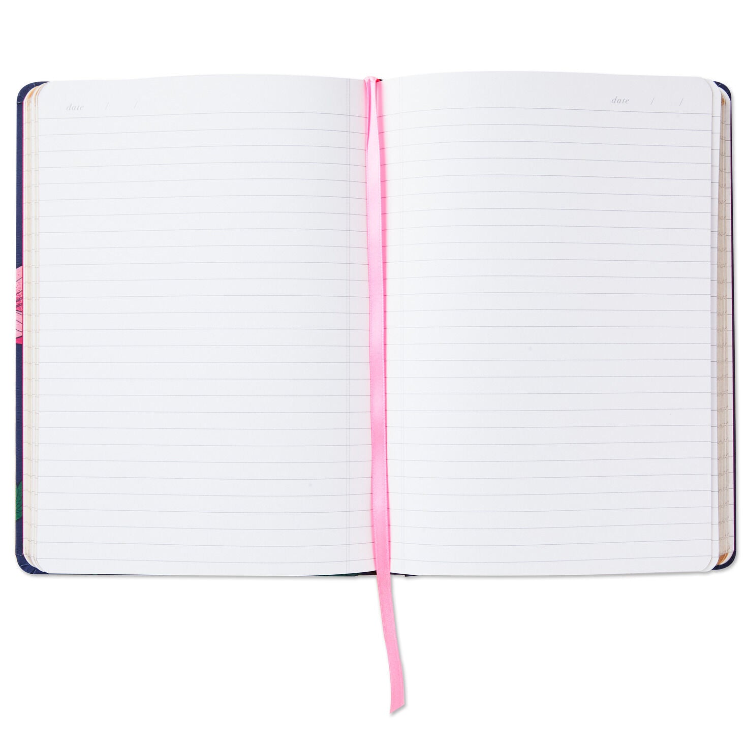 Keep tabs and tackle to-do lists with this pretty poppies notebook. Featuring a dark blue cover embellished with illustrations of bold pink poppies, this journal includes plenty of lined pages to jot lists, notes and more. Fancy details include a ribbon bookmark and gilding on the edges of the pages.