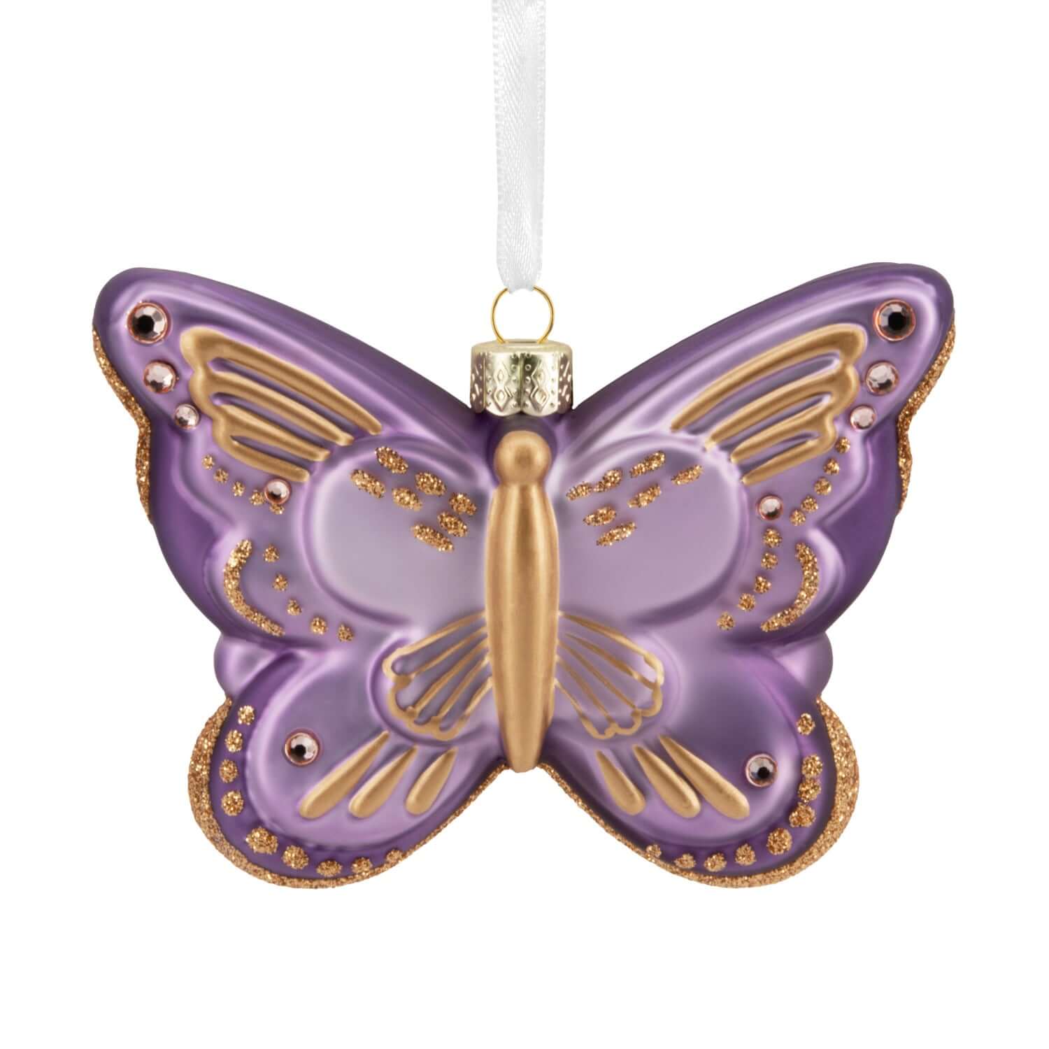 - Inspired by a pretty insect, this glass Hallmark Signature Christmas ornament features a beautiful purple butterfly with gold and gemstone accents.
