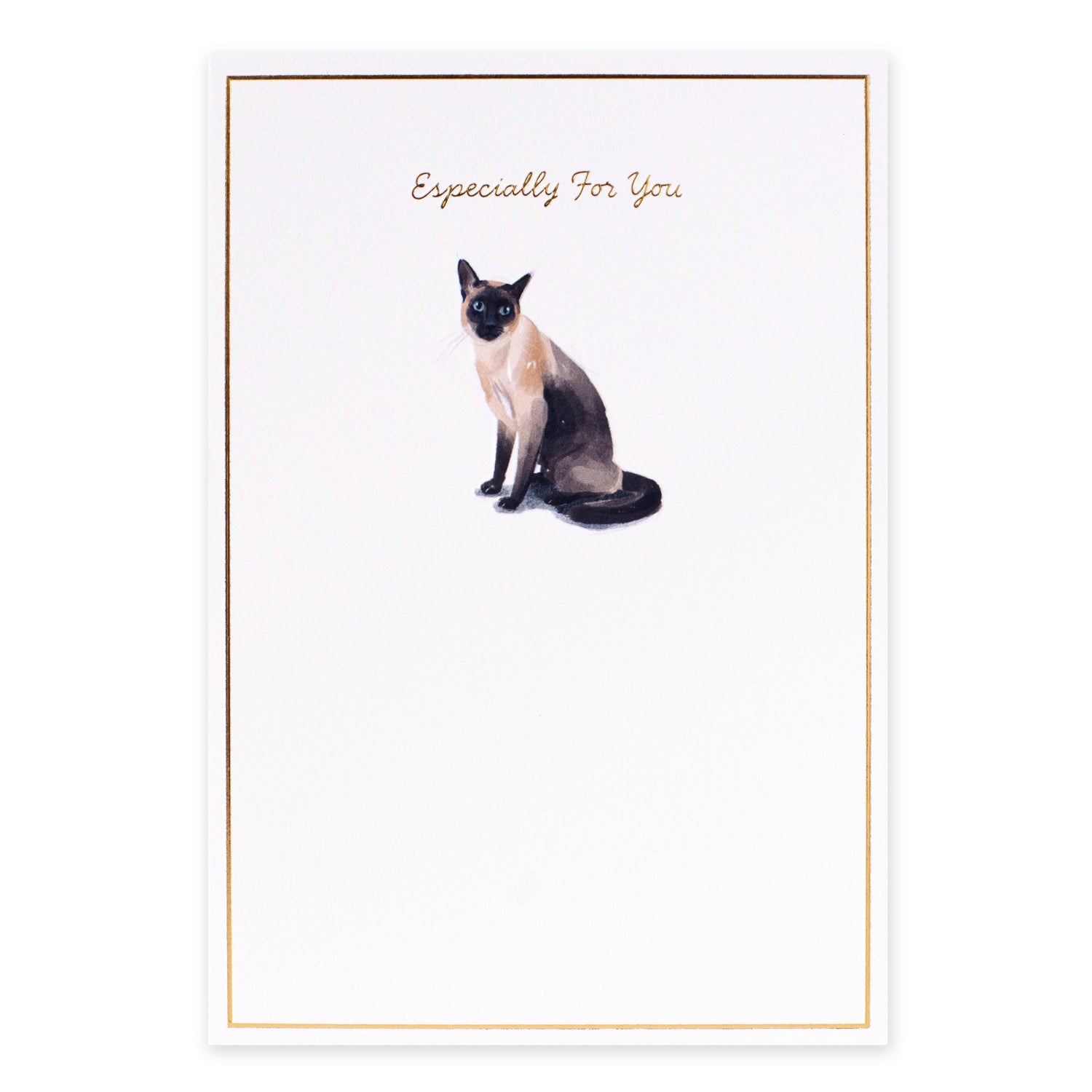 The front of the card features textured paper, gold foil highlights, embossed elements, an illustration of a Siamese cat, and the message “Especially For You” Blank inside for your own message Includes one card and one coordinating Hallmark branded kraft envelope Care for your people. Care for your planet. This product is made of material from well-managed, FSC®-certified forests and other controlled sources and is 100% recyclable.