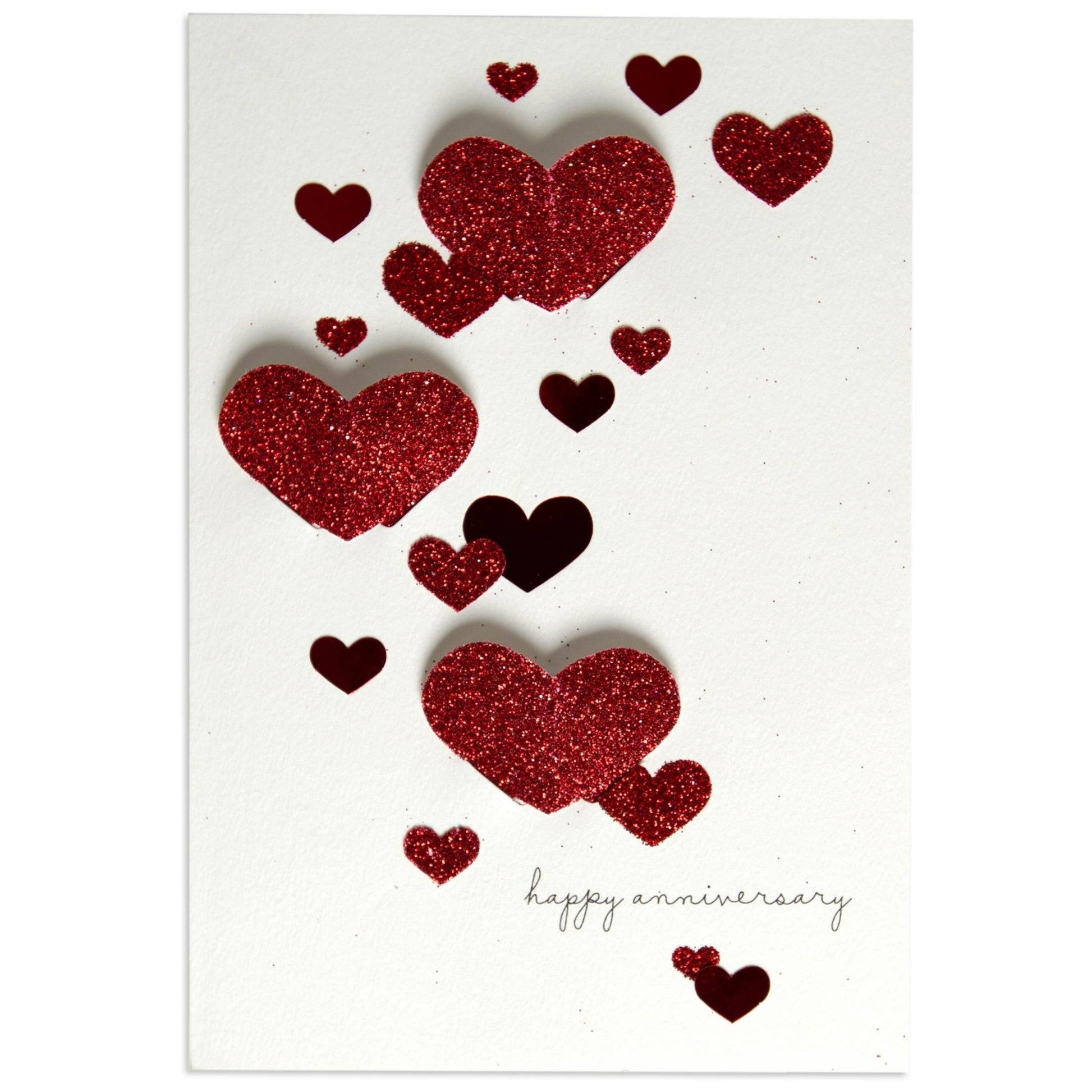 Features a collection of red metallic and glitter laser cut hearts with the message: “happy anniversary”