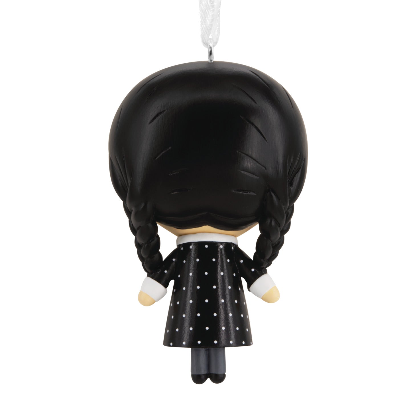 Recall the mystery and sarcastic humour of the Netflix series "Wednesday" with this Hallmark Christmas ornament featuring a stylized design of the Addams daughter in her trademark black and white.