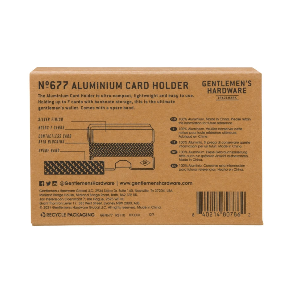 Carry everything you need while keeping a slim profile with our Metal Card Holder. This minimalist wallet is ultra-compact and lightweight while still being able to hold up to 7 cards and banknote storage. Stay stylish with the interchangeable elastic bands to complement the aluminum wallet design. This card holder also features RFID blocking to protect your privacy.