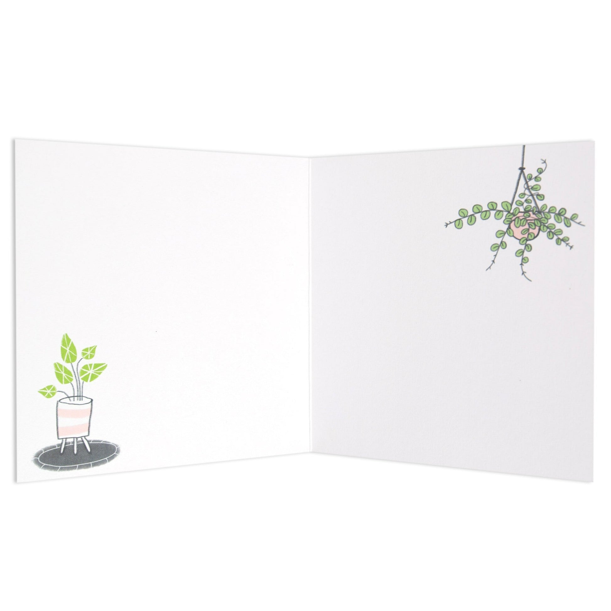 The inside of the card features two cute illustrations of plants and is blank inside for your own message.