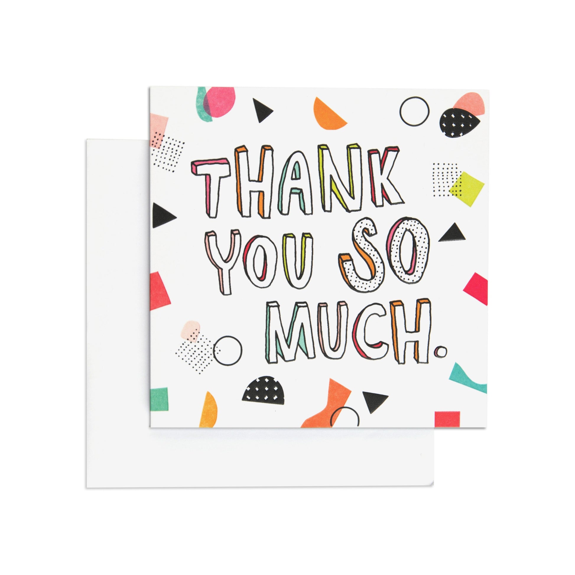 Features embossed colourful shape illustrations with the message: “Thank You So Much.”