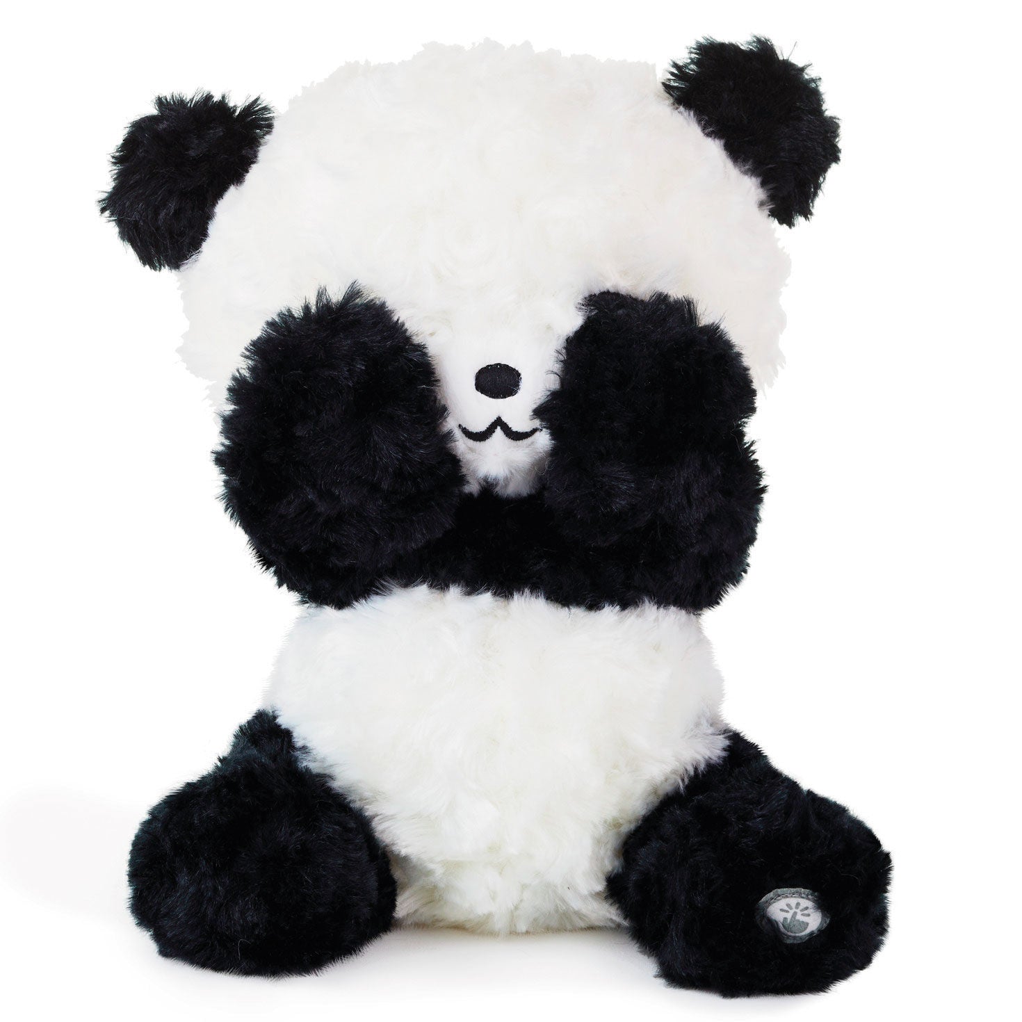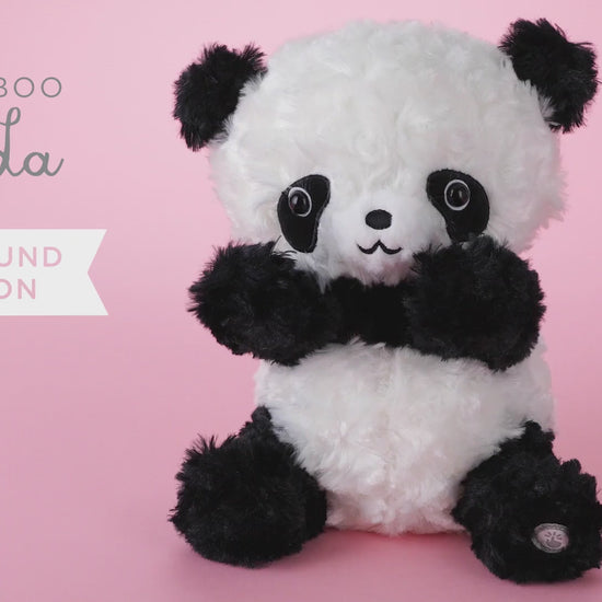 Delight your little one with this adorable stuffed animal. With a press of a button on his foot, this fun panda plush moves and plays a fun peek-a-boo game. Panda covers and uncovers its eyes to five sets of cute peek-a-boo phrases. Perfect gift for birthday, holiday or just because for the little cub in your life.