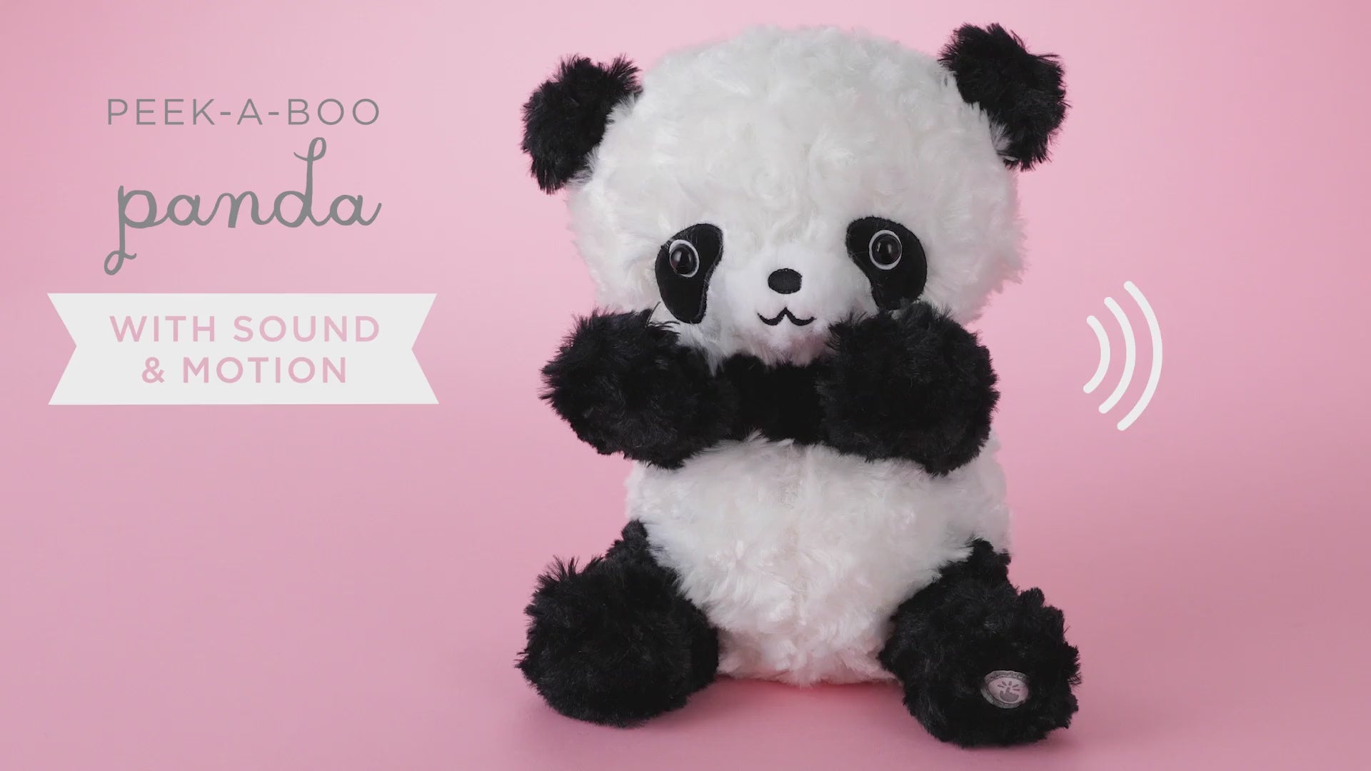 - Press the button to start a cuddly peek-a-boo game with the panda as he says 5 cute phrases.
