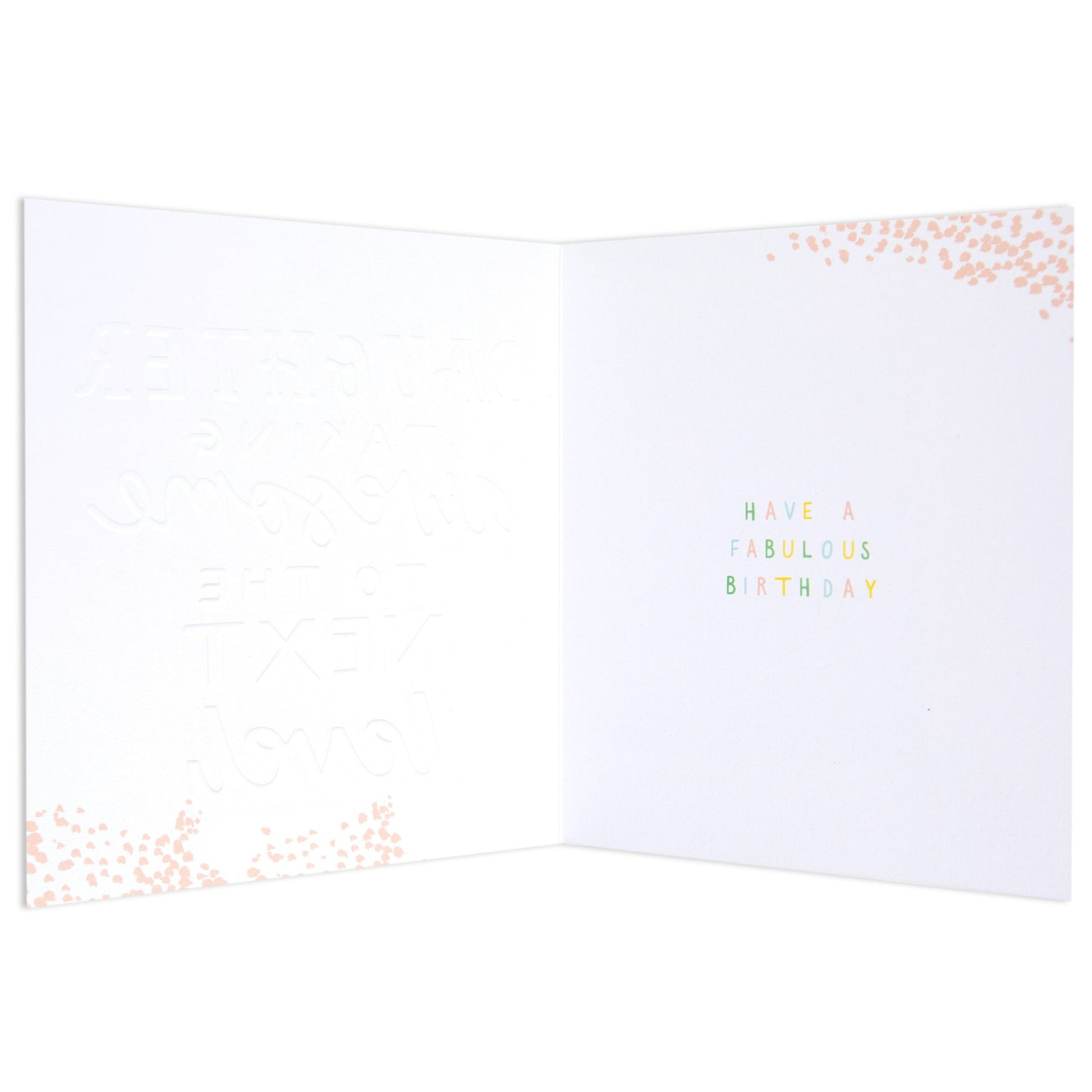 Illustrated with pink spots and the colourful message: “HAVE A FABULOUS BIRTHDAY”.